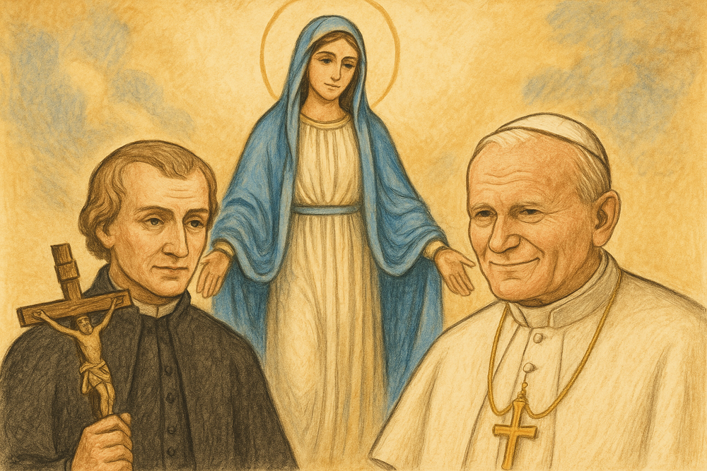 In fact, just over 100 years post-publication, “Totus Tuus” became the motto of Pope John Paul II’s papacy. Although St. John Paul II had been devoted to Mary even as a child, wearing a scapular at age 10 and pilgrimaging to a nearby shrine to pray, he credited St. Louis Montfort’s work, which he discovered in his 20’s, with opening a new understanding of the relationship between Christ, Mary, and the Church: “I was already convinced that Mary leads us to Christ, but at that time I began to realize also that Christ leads us to His Mother” (St. John Paul II).