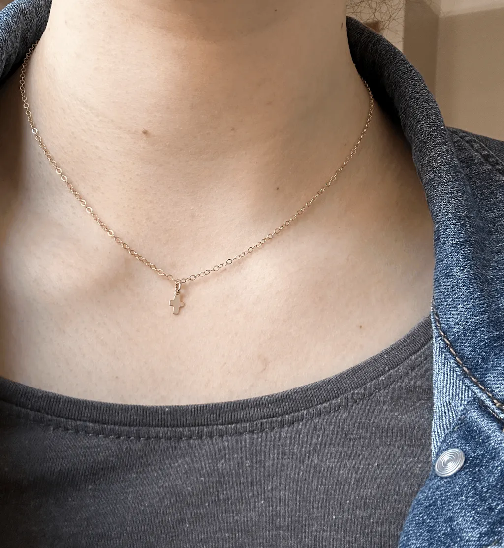 - 14k Gold Filled or 14k Rose Gold Filled 0.17" x 0.28" Dainty Cross