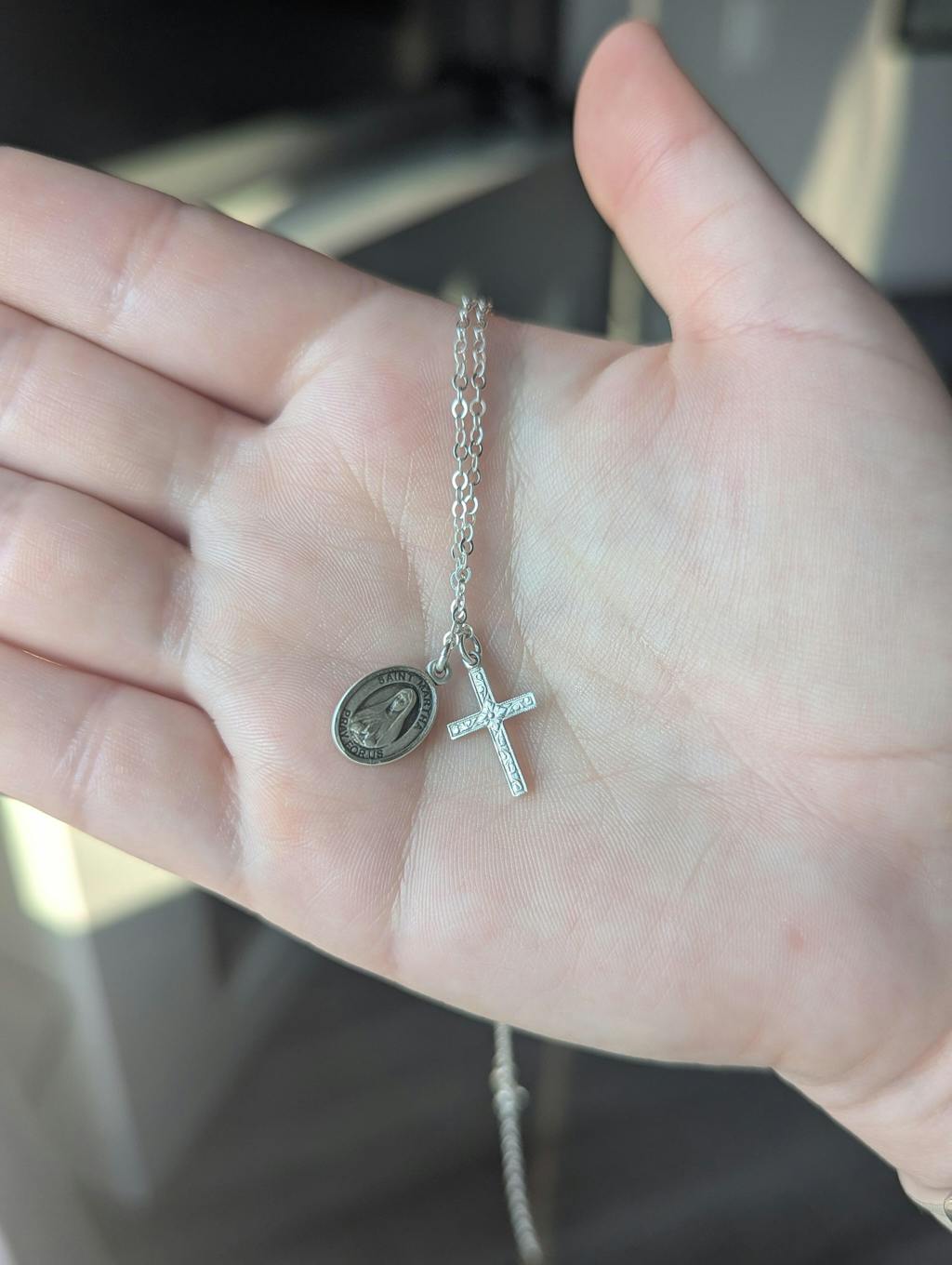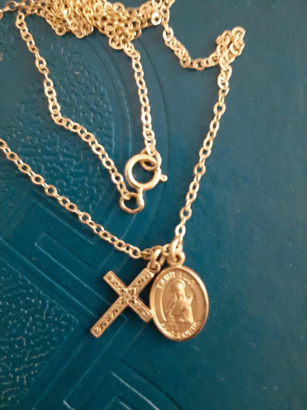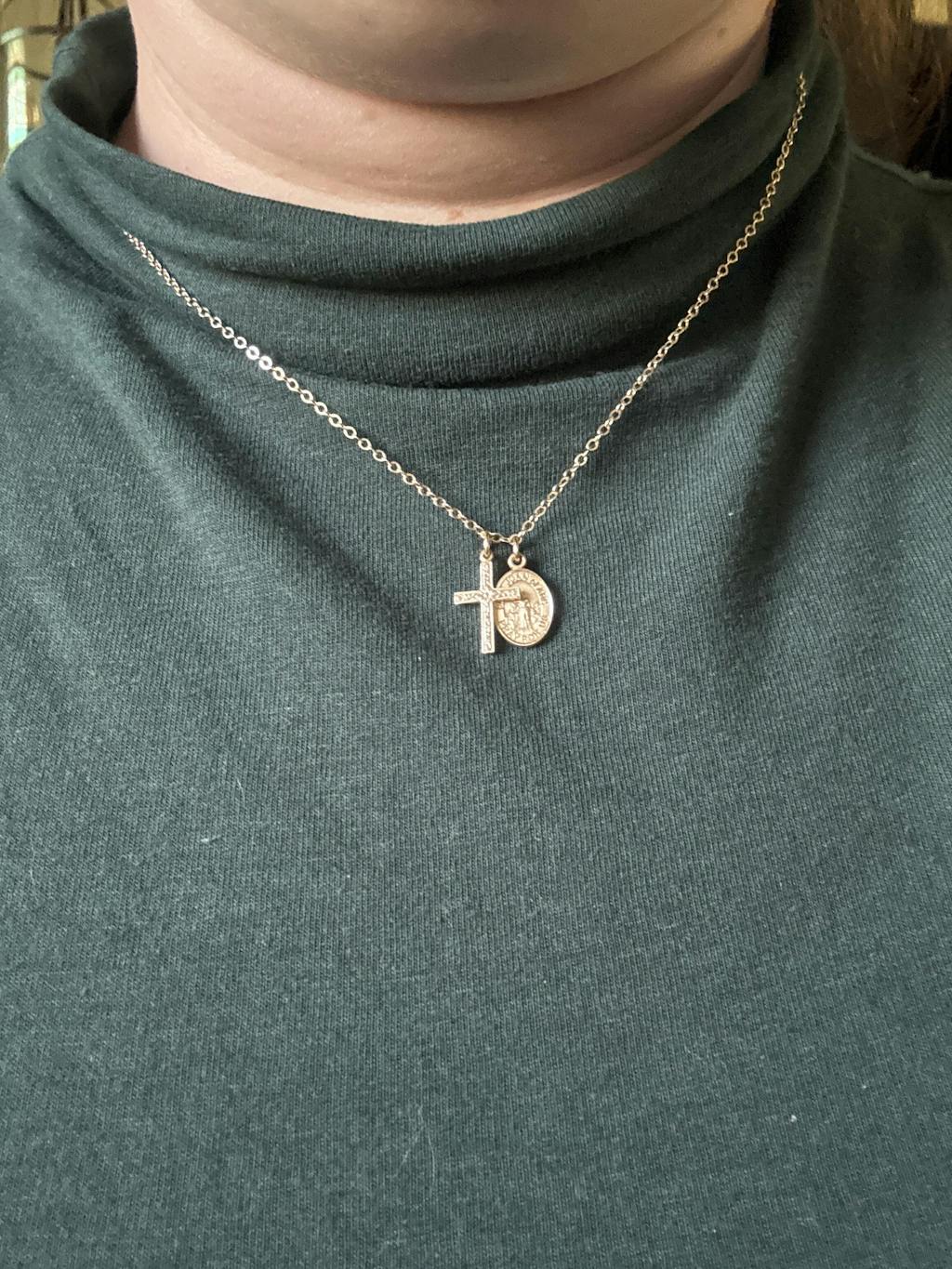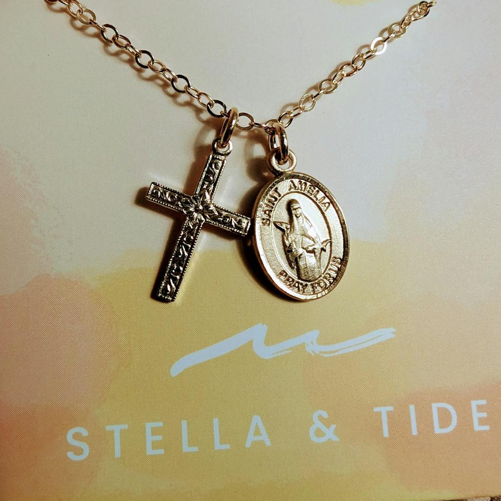 Our Floral Cross & Saint Necklace is a beautiful cross and saint duo. You can choose from our list of 300+ available saints in the "Saint" dropdown above and make this necklace unique!