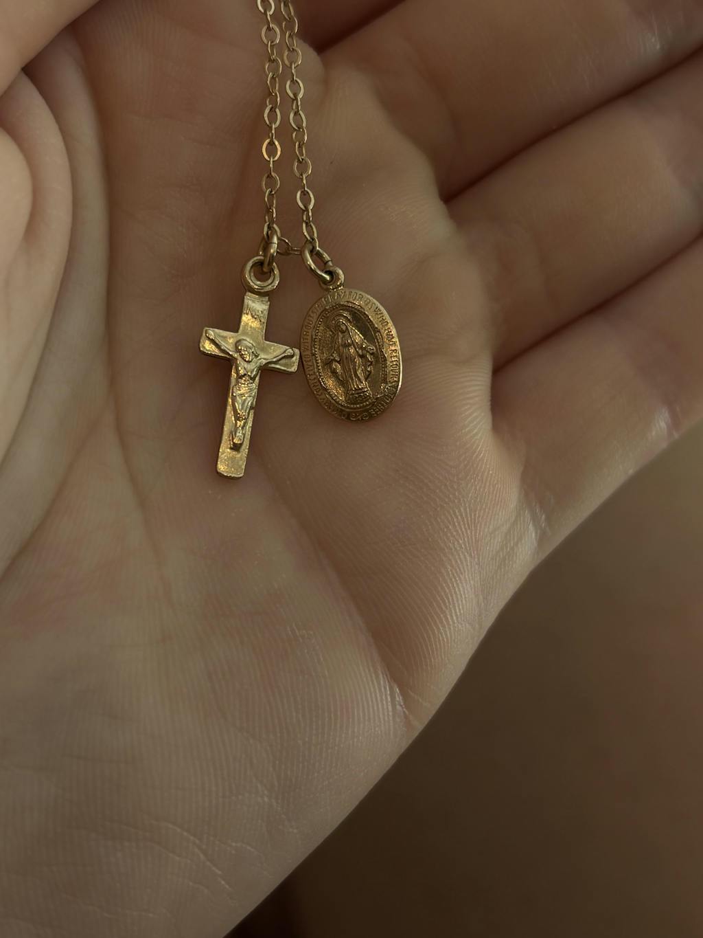 Our Build Your Own Crucifix Necklace allows you to mix and match three of our most popular charms (Crucifix, Miraculous Medal, & Sacred Heart) on a single powerful piece.